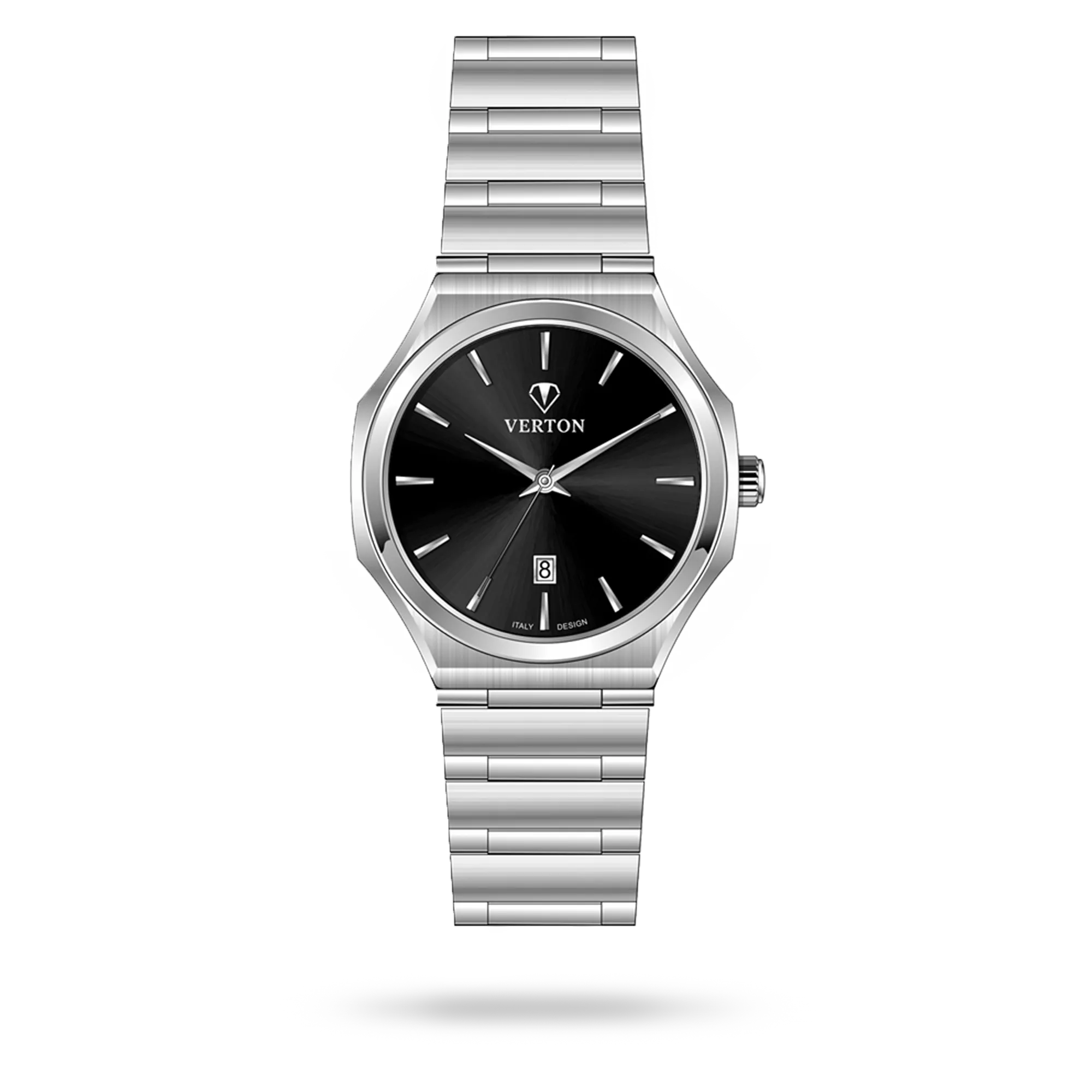 The Verton timepiece is a true expression of Italian elegance and refined craftsmanship. This Calender model, identified by product code VR1104-1110G, features a Steel case perfectly paired with a Steel strap, creating a harmonious and sophisticated appearance. The Black dial adds depth, clarity, and timeless beauty to the design. Offered as a Pair edition, this watch is thoughtfully designed for Gentlemen, making it an ideal choice for those who appreciate precision, luxury, and classic Italian style. Verton watches embody distinctive character, lasting quality, and understated luxury.