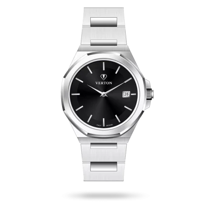 The Verton timepiece is a true expression of Italian elegance and refined craftsmanship. This Calender model, identified by product code VR1107-1110G, features a Steel case perfectly paired with a Steel strap, creating a harmonious and sophisticated appearance. The Black dial adds depth, clarity, and timeless beauty to the design. Offered as a Pair edition, this watch is thoughtfully designed for Gentlemen, making it an ideal choice for those who appreciate precision, luxury, and classic Italian style. Verton watches embody distinctive character, lasting quality, and understated luxury.