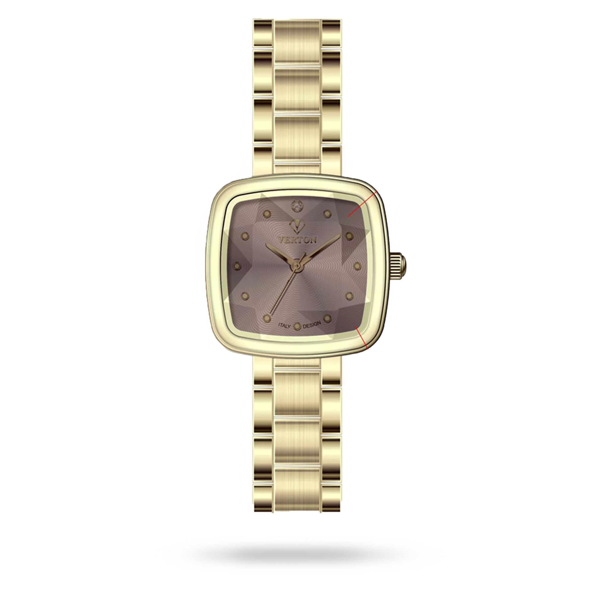 The Verton timepiece is a true expression of Italian elegance and refined craftsmanship. This Classic model, identified by product code VR2101-1250L, features a Golden case perfectly paired with a Golden strap, creating a harmonious and sophisticated appearance. The Coffee dial adds depth, clarity, and timeless beauty to the design. Offered as a Single edition, this watch is thoughtfully designed for Ladies, making it an ideal choice for those who appreciate precision, luxury, and classic Italian style. Verton watches embody distinctive character, lasting quality, and understated luxury.