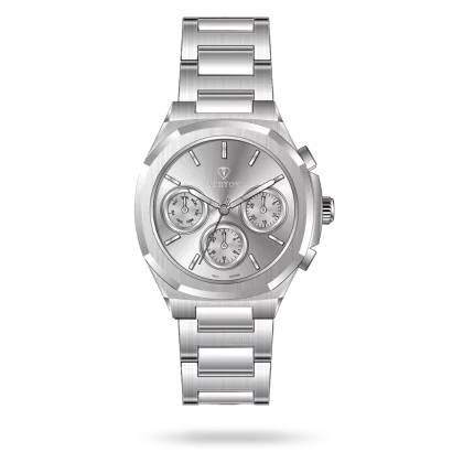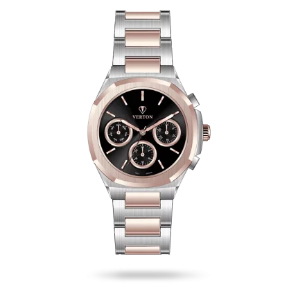 The Verton timepiece is a true expression of Italian elegance and refined craftsmanship. This Full Time model, identified by product code VR4102-1110G, features a Steel case perfectly paired with a Steel strap, creating a harmonious and sophisticated appearance. The Black dial adds depth, clarity, and timeless beauty to the design. Offered as a Pair edition, this watch is thoughtfully designed for Gentlemen, making it an ideal choice for those who appreciate precision, luxury, and classic Italian style. Verton watches embody distinctive character, lasting quality, and understated luxury.