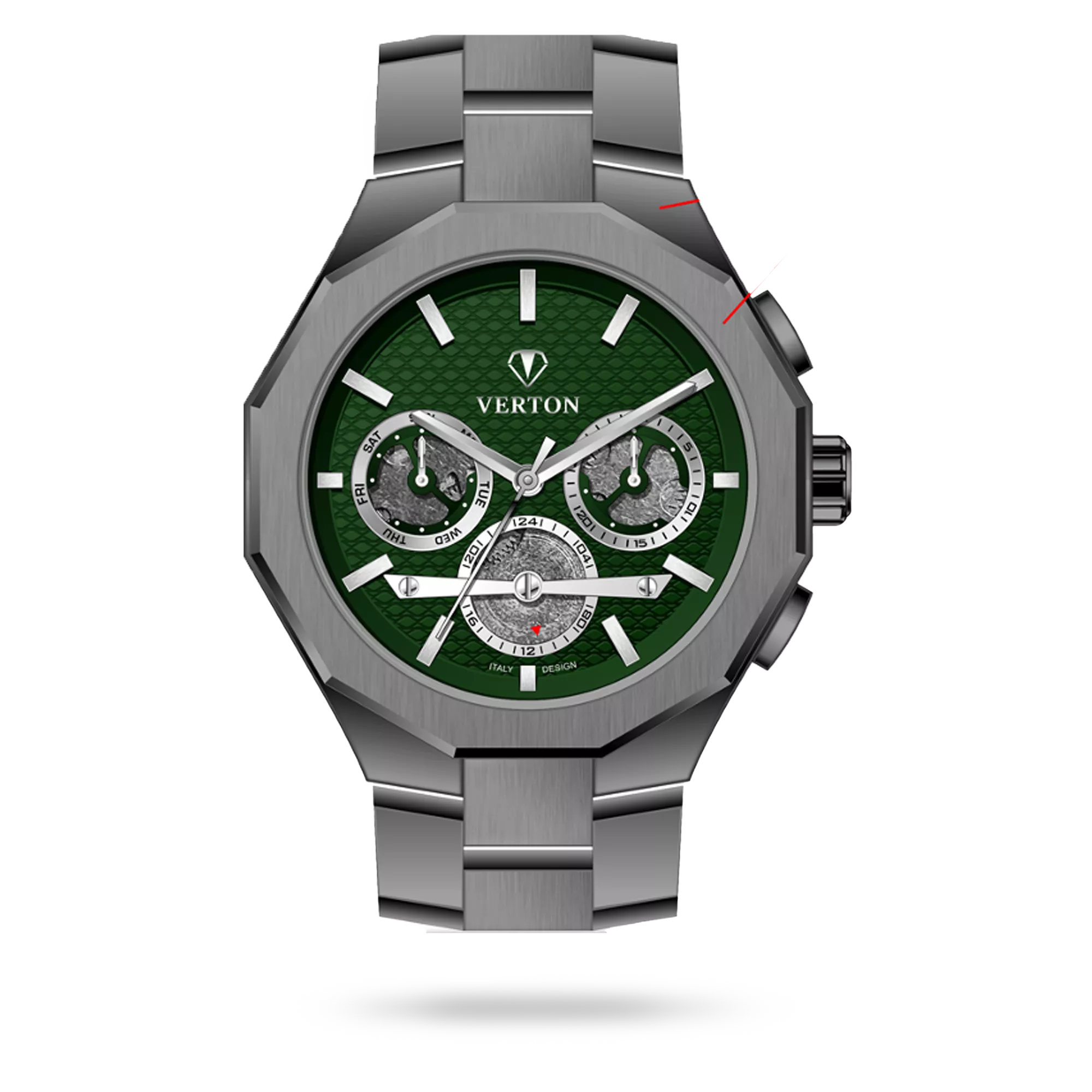The Verton timepiece is a true expression of Italian elegance and refined craftsmanship. This Full Time model, identified by product code VR4104-1210G, features a Smoke case perfectly paired with a Smoke strap, creating a harmonious and sophisticated appearance. The Green dial adds depth, clarity, and timeless beauty to the design. Offered as a Single edition, this watch is thoughtfully designed for Gentlemen, making it an ideal choice for those who appreciate precision, luxury, and classic Italian style. Verton watches embody distinctive character, lasting quality, and understated luxury.